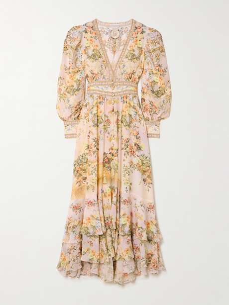 CAMILLA Crystal-embellished tiered floral-print silk-chiffon maxi dress