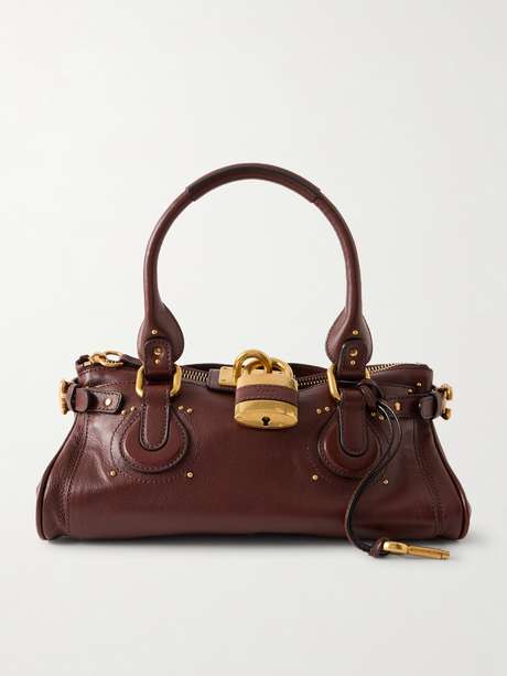 Chemena Kamali revives Chloé’s iconic ‘Paddington’ tote with updated details, marking over 20 years since its debut on the Spring ’05 runway. This version is made from brown leather in an East-West barrel shape with adjustable gussets and gold-tone hardware, including a padlock and key. Add the label's plush charms and stow your phone, wallet and a few cosmetics inside.