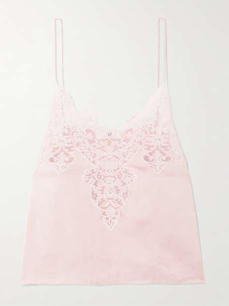 Chloé's camisole is inspired by the beauty of lingerie. It's bias-cut from soft ballet-pink silk-satin and has scalloped cotton-blend lace along the neckline. Neat buttons adorn the side.