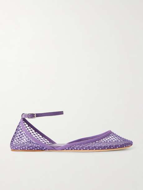 Christopher Esber revisits its coveted 'Minette' ballet flats with this strappy iteration. They've been made in Italy from lattice-inspired mesh, outlined with tonal leather trims and embellished with sparkling crystals.