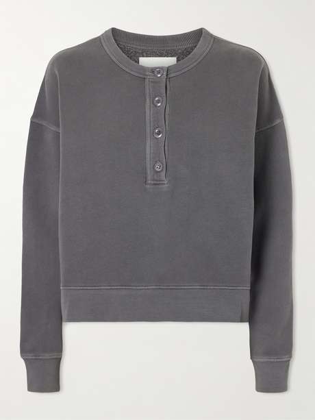 Citizens of Humanity’s sweater features a classic Henley-style placket at the front and a relaxed fit with dropped shoulders and ribbed hems. Made from regenerative cotton-blend fleece, it offers a soft, cozy, and sustainable wear.