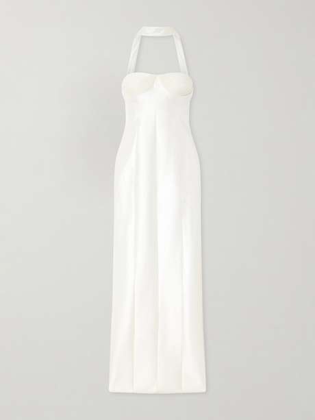 Daniel Frankel's designs couldn't be more perfect for the modern bride. Made from wool and silk-blend twill, this 'Lette' gown has a boned bodice detailed with gathered tulle cups and an elegant scarf-effect panel. Lift the floor-skimming hem with the label's heels.
