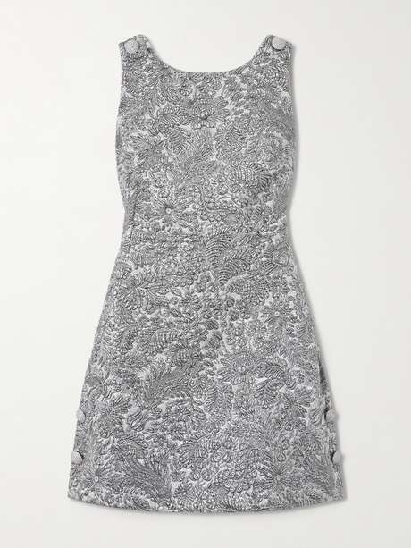 Dolce&Gabbana's mini dress is made from brocade in a silver tone that'll ensure you shine bright at events. It's cut in a retro shift shape and has an elegant scoop back and crystal-embellished buttons.