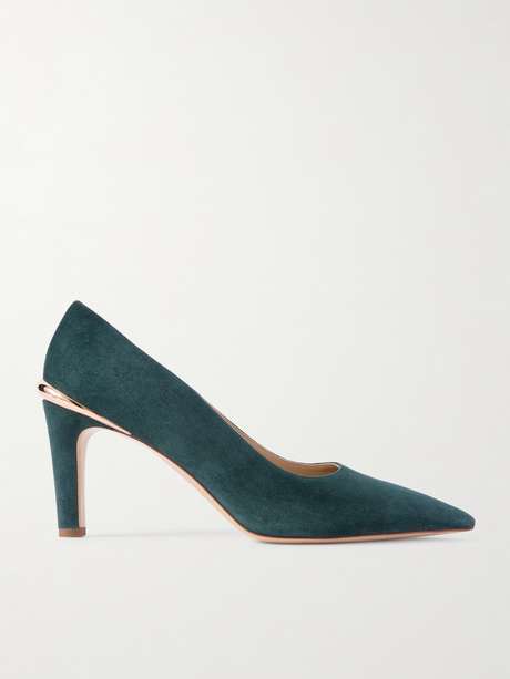 Gabriela Hearst's 'Edwina' pumps are detailed with polished gold-tone hardware that traces the curve of the heels. They're made from smooth suede and have classic pointed toes.