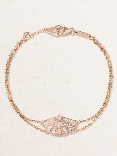 The intricacy of Garrard's 'Fanfare Symphony' bracelet is a sight to behold - inspired by folding fans, it's encrusted with twinkling diamonds. Crafted from 18-karat rose gold, it'll add warmth to your signature jewelry mix.
