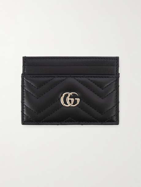A chic alternative to bulky wallets, Gucci's slim cardholder will slip easily into any of the label's bags. It's made from quilted leather and has four card slots and a middle compartment to hold receipts or tickets. The burnished 'GG' hardware is a signature pulled from the brand's archives.