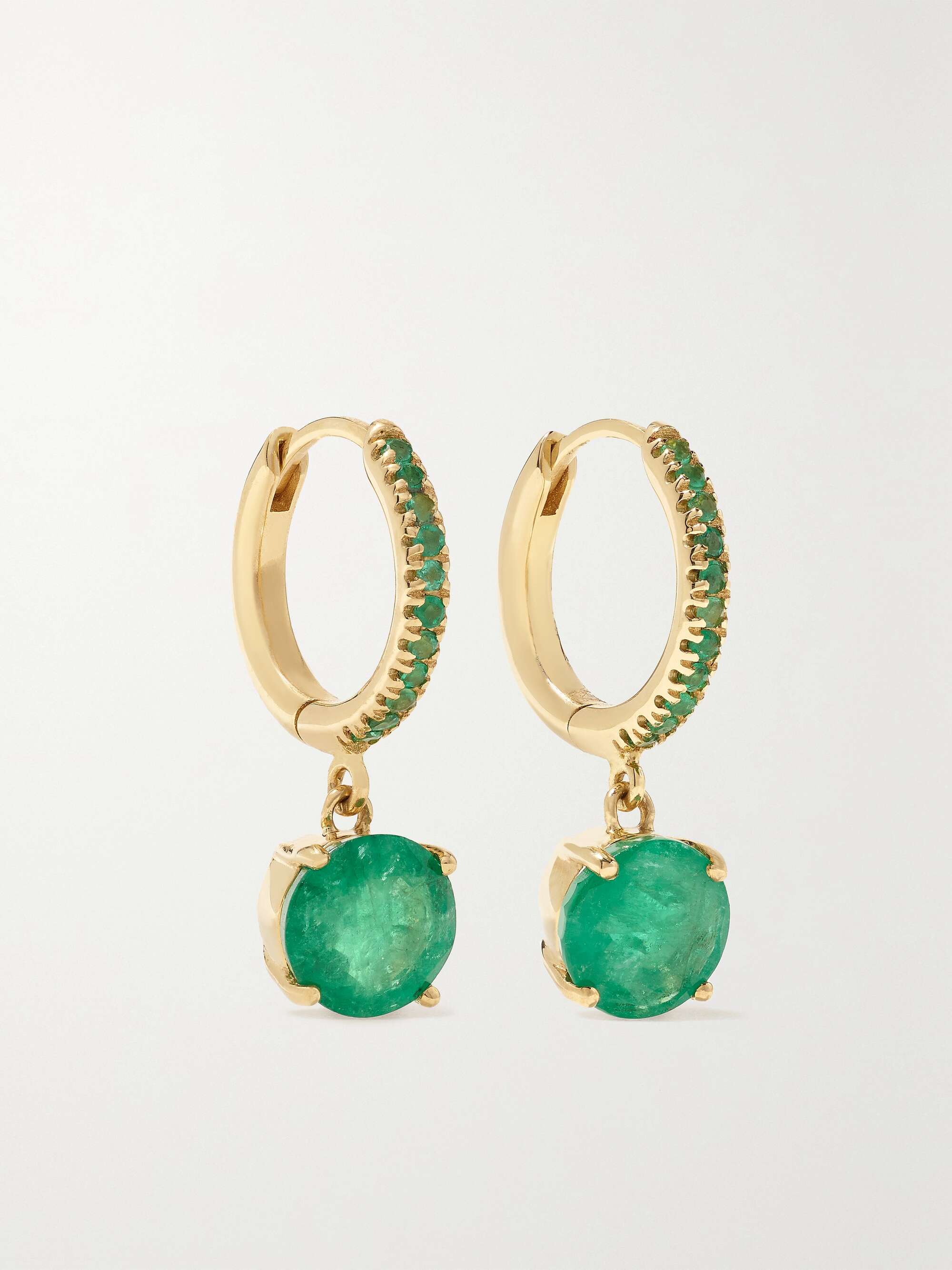 ILEANA MAKRI Grass Seed 18-karat gold emerald hoop earrings