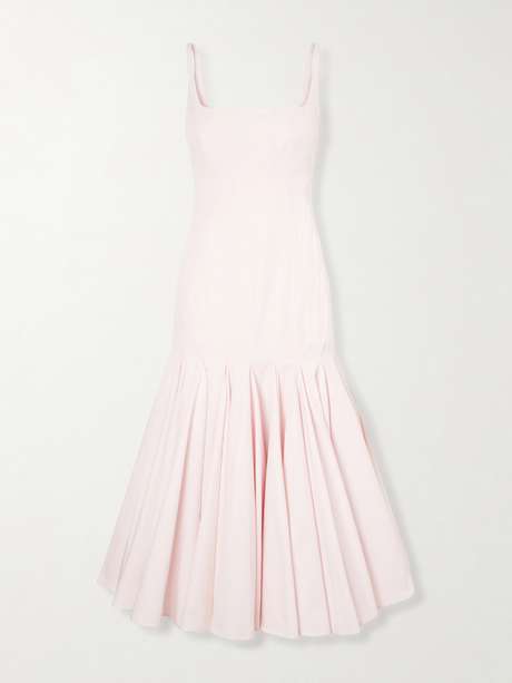 Jacquemus' 'Agave' dress is inspired by the art of corsetry. Made from crisp cotton-poplin, it has a paneled, fitted bodice and elegant square neckline that descends to voluminous godet pleats. Pair yours with dainty ballet flats or elevated sandals for twirling power.