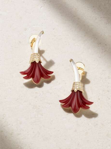 So many of L'Atelier Nawbar's pieces are inspired by the beauty of nature. Handmade from 18-karat gold, these earrings are cast in the shape of blooming flowers - rich carnelian make up the petals, while lustrous mother-of-pearl takes form of the stem. A dusting of dainty diamonds gives them the perfect amount of sparkle.