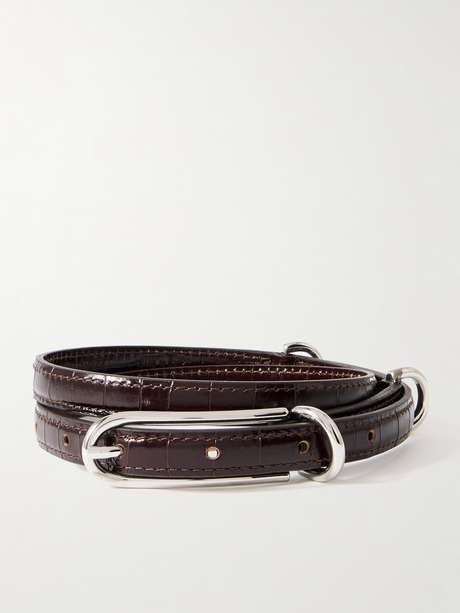 The trio of sleek silver-tone metal loops circling Liffner's belt earn its 'Three Keeper' namesake. It's been crafted in Italy from a length of croc-effect leather with a neatly tapered end. Use yours to cinch blazers or dresses.