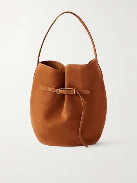 The soft curves of Liffner's bucket bag are inspired by the organic shapes found in nature. Crafted in Italy from suede, it's minimally detailed with a buckled strap, and it's perfectly sized to fit a 13'' laptop.