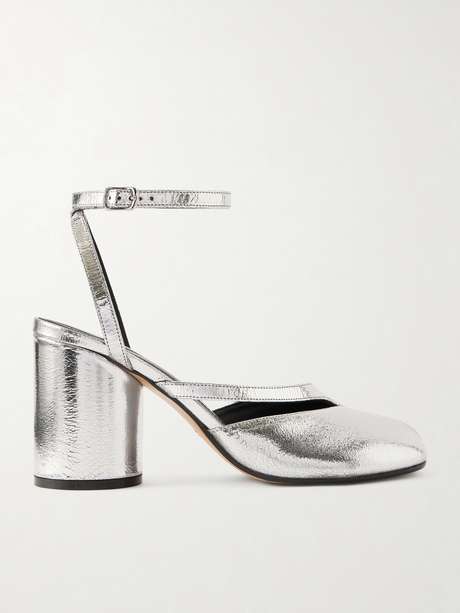Inspired by 15th century Japanese socks of the same name, Maison Margiela’s cult ‘Tabi’ shoes have been re-imagined countless times since their initial release with the label’s debut collection in 1989. These pumps have been made in Italy from metallic silver leather and have cutout straps and cylindrical block heels.