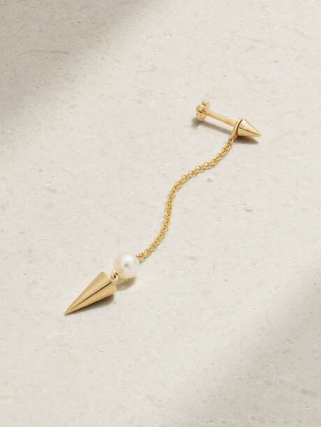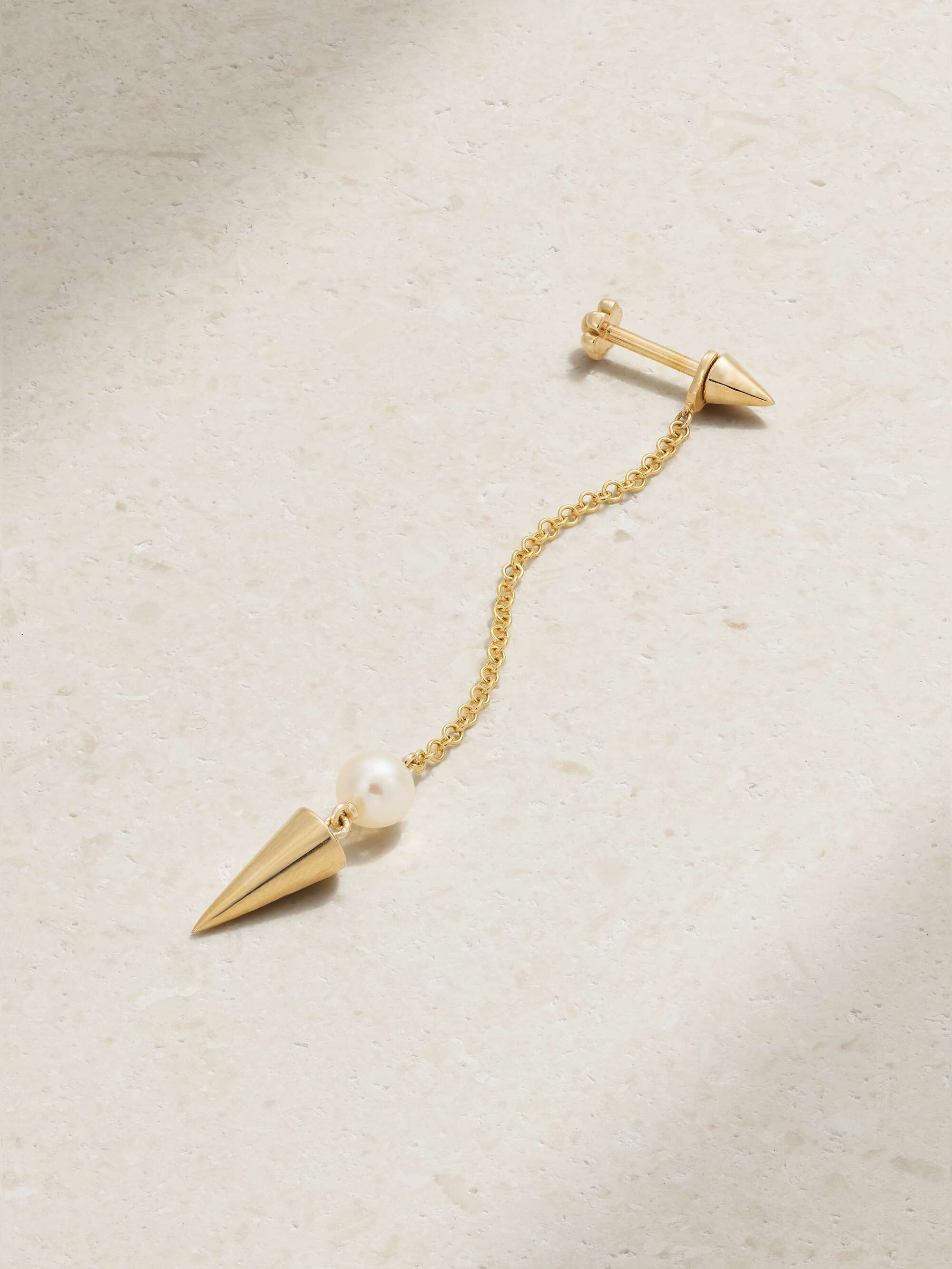 MARIA TASH 40mm Pendulum Spike 14-karat gold pearl single earring