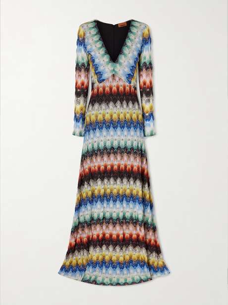Fans will instantly recognize Missoni’s signature zigzag print. Made in Italy from crochet-knit, this maxi dress is part of the 'Summer Sunset' capsule and is woven with metallic threads for a subtle sheen and finished with a V-neckline.