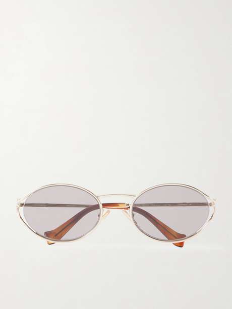 Miu Miu's sunglasses will lend a retro slant to any outfit. Made from gold-tone metal, they have oval frames fitted with gray lenses and are detailed with the label's logo at the temples. The tortoiseshell acetate-tipped arms ensure a comfortable fit.