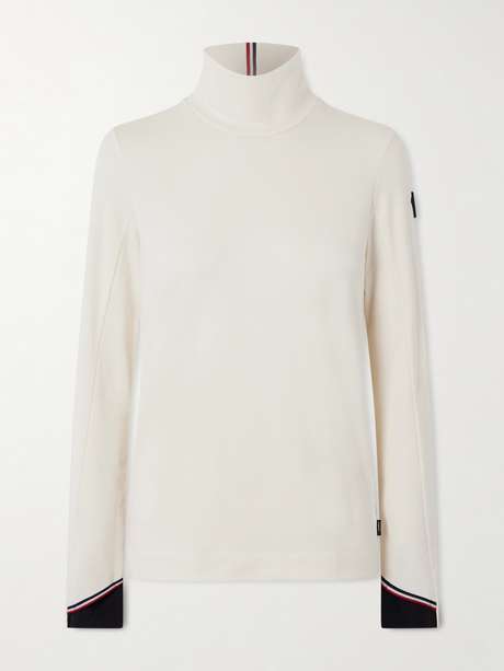 The fleecy softness of Moncler Grenoble's base layer makes it irresistible on cold weather days. It's cut from soft technical jersey with the brand's tricolor stripes tipping the cuffs. The mock-neck and thumbholes provide extra coverage.