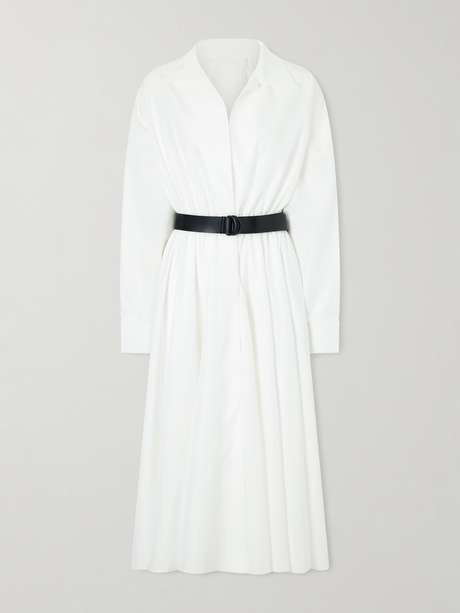 Norma Kamali's maxi dress is a surefire way to feel chic and put-together. Cut from shell, it has a concealed placket and gathers at the waist to create volume as it falls. The D-ring leather belt defines the waist.