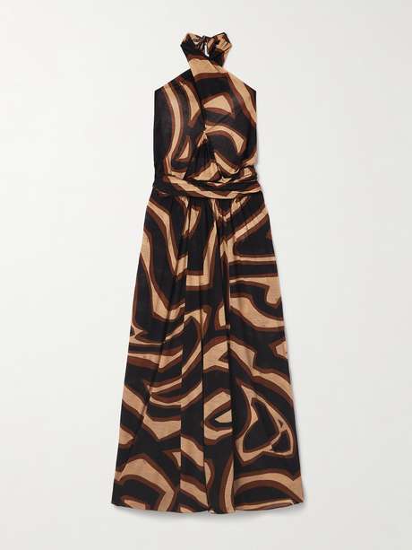 Nearly every PUCCI design bears one of the brand’s iconic, instantly recognizable prints — and this maxi dress is no exception. Made from a wool-blend jersey, it features elegant draping at the halterneck and falls to a floaty, gathered skirt. Style it with heels and gold jewelry.