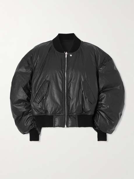 Exaggerated proportions are Rick Owens' signature. Made from a coated cotton-blend, this 'Cal' bomber jacket has a relaxed shape with voluminous, elongated sleeves and ribbed trims. Take cues from the Fall '25 runway and wear yours as part of an all-black outfit.
