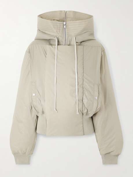 The extreme proportions of this jacket undoubtedly read Rick Owens. An exploded version of bomber styles, it's made from padded shell with an oversized collar and asymmetric overlay down the bodice.