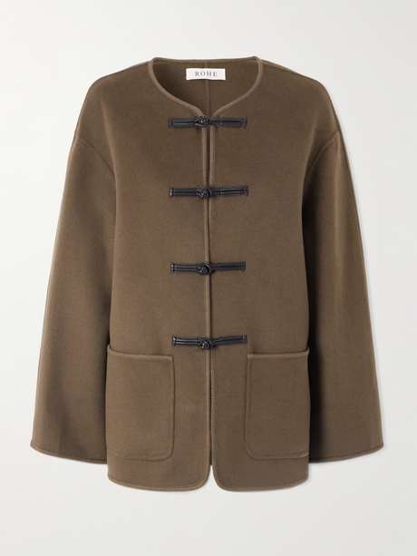 RÓHE's 'Marie' jacket features a Mandarin collar and traditional pankou fastenings, nodding to classic Chinese tailoring. Made from wool, it has a slightly loose shape enhanced by wide sleeves.