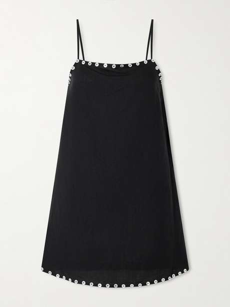 STAUD's 'Laura' dress is defined by pearlescent buttons that trace the square neckline and mini hem. It's made from breathable linen-blend and has pin-thin shoulder straps.