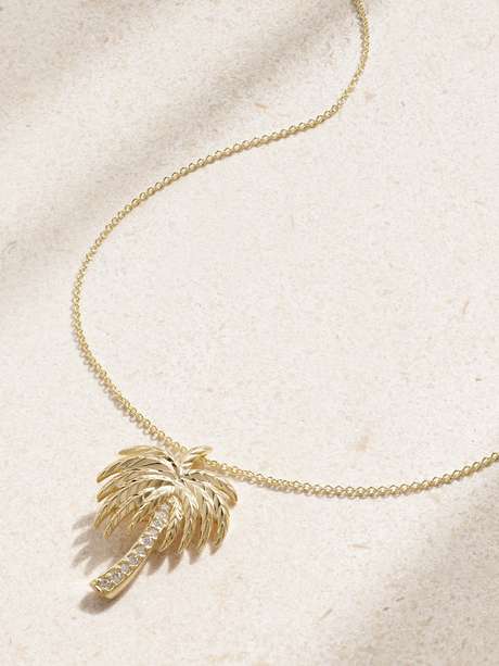Sydney Evan's necklace is adorned with a palm tree charm - each leaf is carefully carved, giving it a realistic look and feel. Made from 14-karat gold, it's dotted with diamonds along the trunk and strung on an adjustable 16- to 18-inch chain.