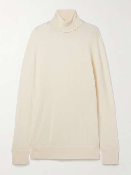 There are few things more chic than an ivory turtleneck sweater, so you'll want to invest in one as luxurious as The Row's 'Lizzy' style. Made in Italy from soft cashmere, it has an oversized, longline shape and cozy ribbed trims. Wear yours with the brand's wide-leg tailoring.