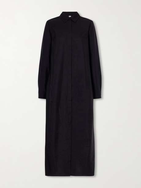 TOTEME's signature minimalist style is subtly elevated by the parachute silhouette of this dress. Made from silk-blend, it is designed as a shirt dress with a classic collar and buttoned front. Style yours with minimal sandals.