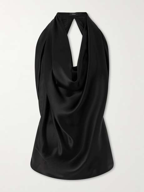 WARDROBE.NYC’s halterneck top is a sleek go-to for dinners and parties. Made in Italy from fluid silk-satin, it’s draped to fall effortlessly into a sweeping cowl neckline. Pair it with tailored pants, a clutch and a hint of shimmer.