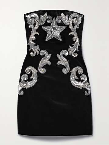 Strapless embellished cotton-velvet mini dress