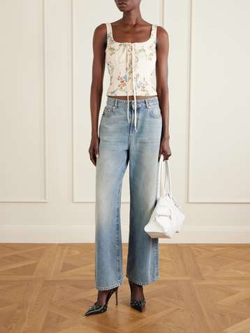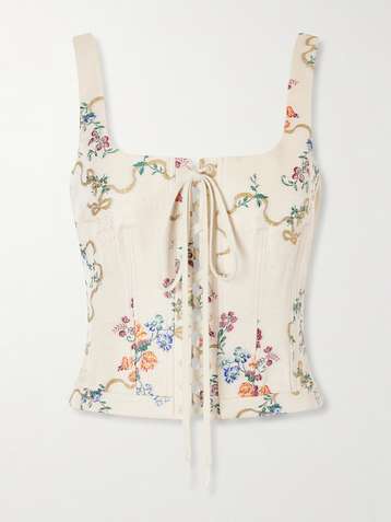 Floral-print crepe corset top