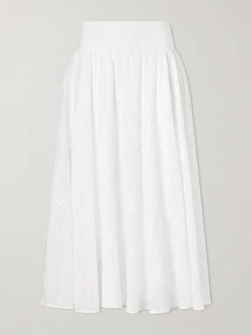 Verde pintucked embroidered cotton and linen-blend midi skirt