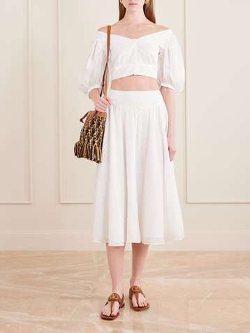 Pamela pleated broderie anglaise cotton midi skirt