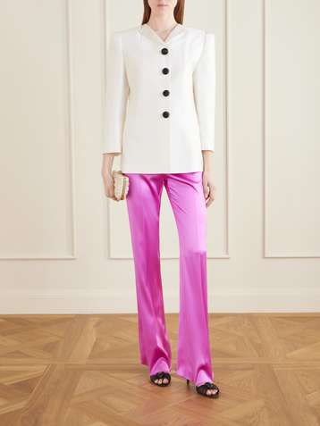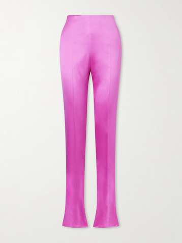 Silk-blend duchesse straight-leg pants