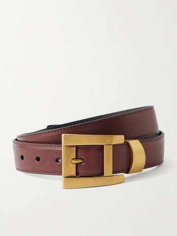 Horsebit-detailed textured-leather belt