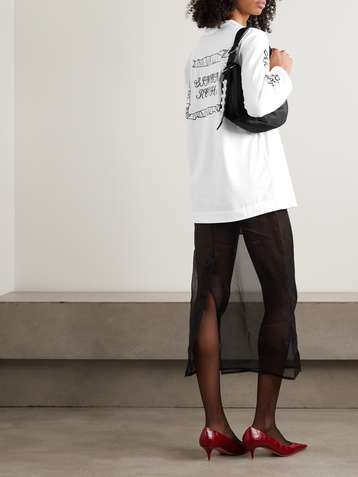 Pussy-bow broderie anglaise-trimmed gathered organic silk shirt