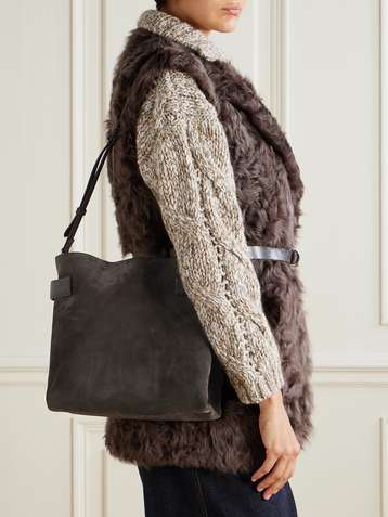 Loafer Cabas tasseled leather-trimmed suede shoulder bag