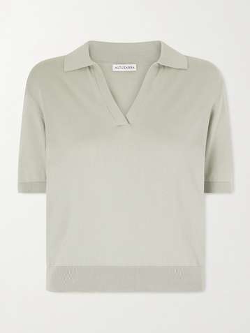 Clay cropped cotton and silk-blend polo shirt