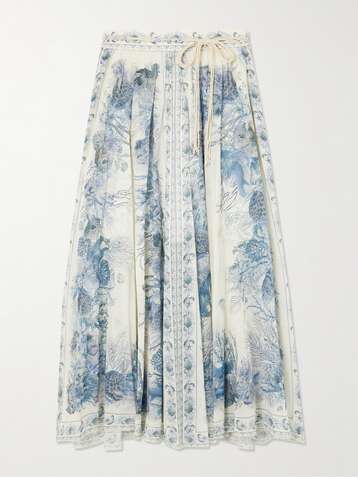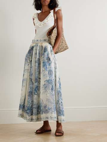 Wanderlust belted pleated printed cotton maxi skirt