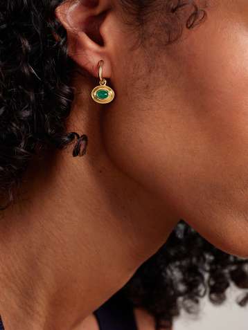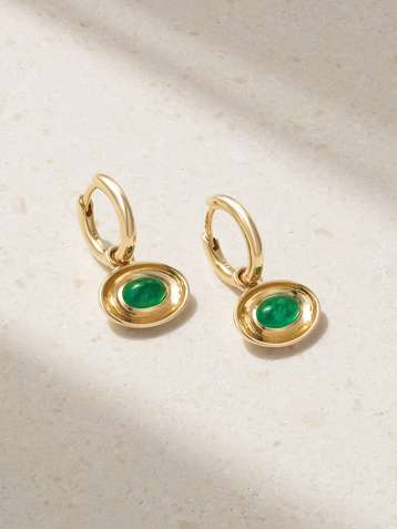 Aurelia 14-karat gold emerald hoop earrings