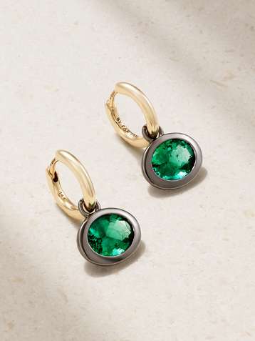 XL Orbit 14-karat gold emerald hoop earrings