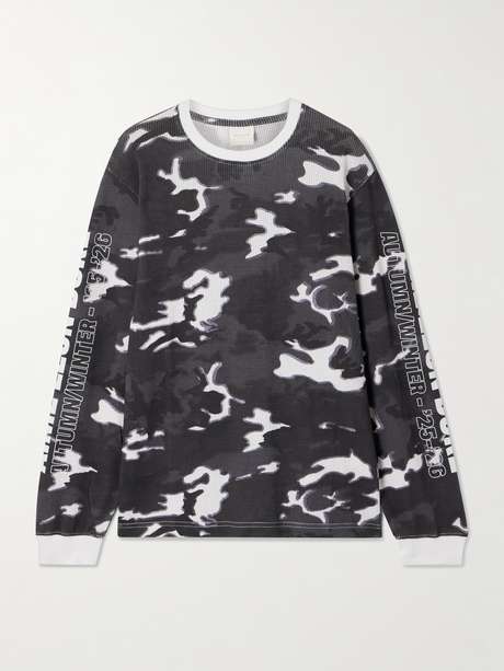 New York label Aimé Leon Dore has a cool way with graphics. This camo T-shirt made from breathable cotton-mesh with a contrasting ribbed neckline and cuffs. Collection info runs along each sleeve, evoking skater styles.