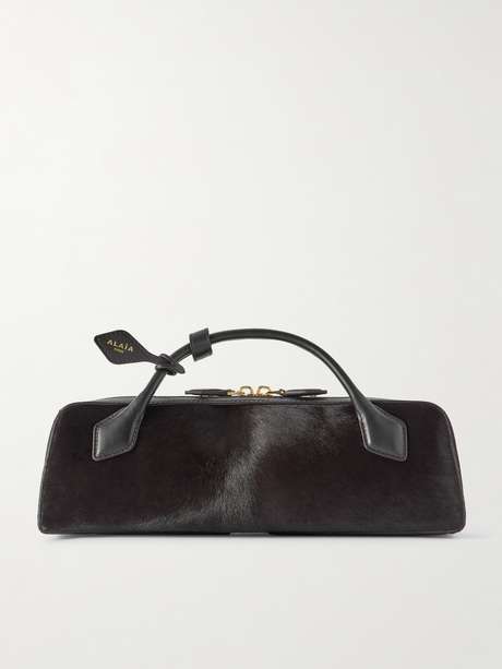 Alaïa's 'Le Teckel' clutch has an elongated shape inspired by a dachshund. Crafted in Italy from calf hair, it's framed by tubular leather handles and holds enough space inside for your phone, keys and lipstick. The luggage tag is stamped with foiled logo lettering to match the gold-tone hardware.