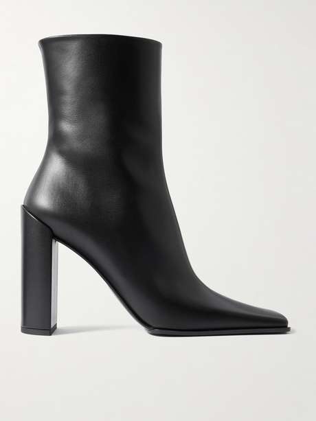 Before his career in fashion, Azzedine Alaïa studied sculpture at École des Beaux-Arts in Tunis, Tunisia, an education that would later inform his namesake label. These ankle boots are made from leather and have sharp square toes and 90mm block heels.