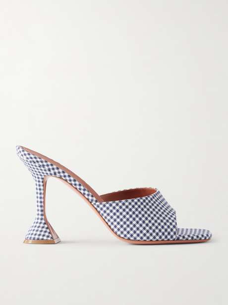 The fluted heel in Amina Muaddi's collections came from the idea of making something typically feminine - the stiletto - look a bit edgier. These 'Lupita' 95 mm mules are made from a checked Vichy fabric, adding a playful, summery touch.