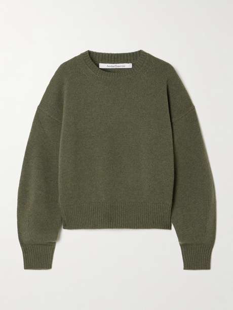 - Dark-green recycled-cashmere and wool-blend