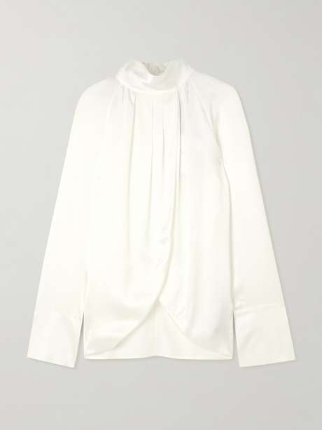 Balmain's blouse brings understated, contemporary elegance to your evening wardrobe. Cut from glossy silk-satin that drapes fluidly over the body, it has a high neck and a crossover front that opens to reveal a hint of midriff. Style yours with tailored separates or denim for a look that’s effortlessly elevated.