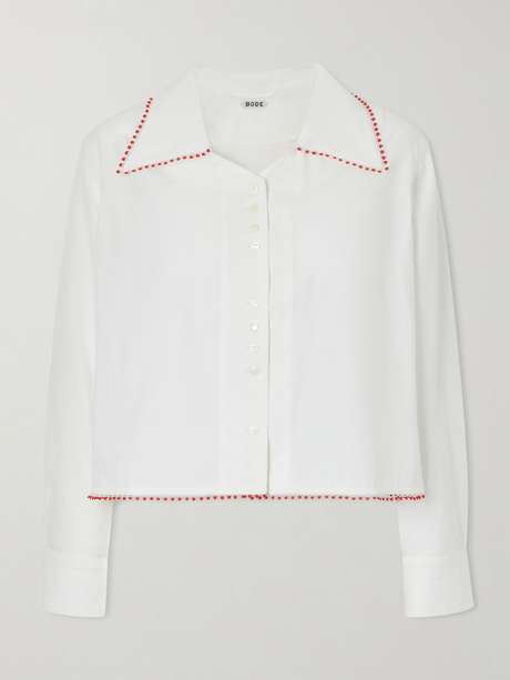 BODE Redbud cropped embroidered cotton-poplin shirt