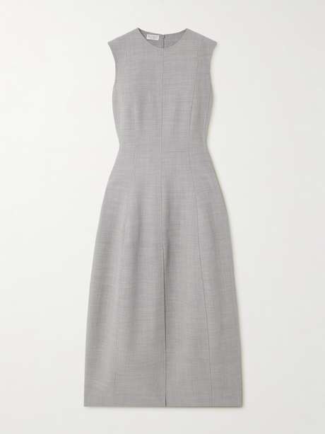 Time-honored craftsmanship and quality fabrics are integral to Brunello Cucinelli's ethos. A contemporary take on the classic fit-and-flare silhouette, this midi dress is paneled from fine wool and designed to be slightly fitted at the bust and waist before flaring out at the hip. The front split reveals a flash of leg when you walk.